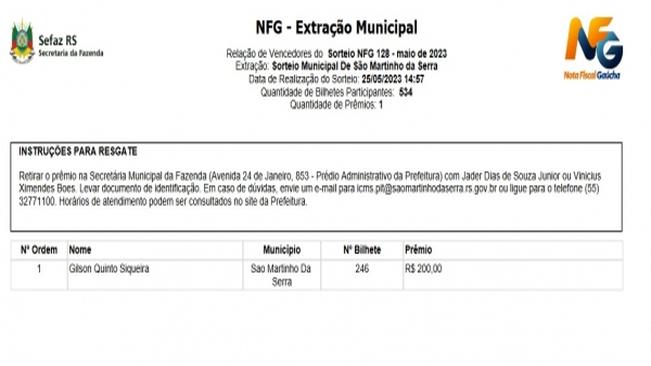 Resultado do programa peça nota - NOTA FISCAL GAÚCHA A Nota Fiscal Gaúcha valoriza as empresas que atuam em parceria com o Estado e a sociedade para promover o desenvolvimento do RS e visa o combate à sonegação fiscal e à concorrência desleal. ⠀⠀⠀⠀⠀⠀⠀⠀⠀ ⠀⠀⠀⠀⠀⠀⠀⠀⠀ ⠀⠀⠀⠀⠀⠀⠀⠀⠀ ⠀⠀⠀⠀⠀⠀⠀⠀⠀ ⠀⠀⠀⠀⠀⠀⠀⠀⠀ ⠀⠀⠀⠀⠀⠀⠀⠀⠀ ⠀⠀⠀⠀⠀⠀⠀⠀⠀ ⠀⠀⠀⠀⠀⠀⠀⠀⠀ ⠀⠀⠀⠀⠀⠀⠀⠀⠀ O Município de São Martinho da Serra aderiu ao Programa da Nota Fiscal Gaúcha no mês de Setembro de 2021. Um dos benefícios desse programa é o sorteio de prêmios à população, por isso a Prefeitura informa o ganhador do sorteio. ⠀⠀⠀⠀⠀⠀⠀⠀⠀ ⠀⠀⠀⠀⠀⠀⠀⠀⠀ ⠀⠀⠀⠀⠀⠀⠀⠀⠀ ⠀⠀⠀⠀⠀⠀⠀⠀⠀ ⠀⠀⠀⠀⠀⠀⠀ ⠀⠀⠀⠀⠀⠀⠀⠀⠀ ⠀⠀⠀⠀⠀⠀⠀⠀⠀ ⠀⠀⠀⠀⠀⠀⠀⠀⠀ ⠀⠀⠀⠀⠀⠀⠀⠀⠀ ⠀⠀⠀⠀⠀⠀⠀⠀⠀ ⠀⠀⠀⠀⠀⠀⠀⠀⠀ ⠀⠀⠀⠀⠀⠀⠀⠀⠀ ⠀⠀⠀⠀⠀⠀⠀⠀⠀ Peça o CPF na nota fiscal no momento da compra! Assim você colabora com o Estado e a sociedade e ainda pode ser gratificado