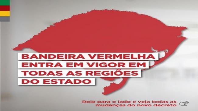 Bandeira vermelha no Rio Grande do Sul!Mais finformações acesse: https://planejamento.rs.gov.br/normativas-distanciamento
